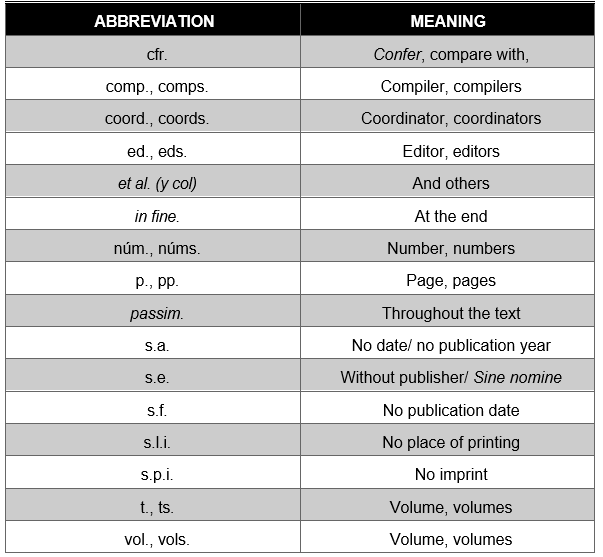 *Note: Although some Latin abbreviations such as *et al.*, *passim*, and *in fine* are still used in academic writing, authors are encouraged to prioritize clarity by using their plain English equivalents whenever appropriate